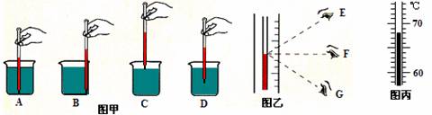 ;在图乙所示的读数方法中,正确的是 ;从图丙中读出热水的温度是