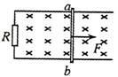 如图,U形光滑导轨串有一电阻R,放在匀强磁场中,导轨平面与磁场垂直。电阻可忽略的金属杆ab跨接在导轨上,可沿导轨平移,现对ab杆施加水平向右的恒力F,杆从静止开始运动,则下列判断正确的是