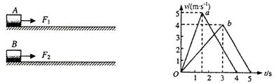 19.静止在水平地面上的物体A、B质量相同,现用水平拉力F1、F2分别作用于A、B,一段时间后撤去拉力,各自滑行一段距离后停下。A、B运动的v-t图象如图,其中物体减速运动过程中速度图线平行,由图中信息可得