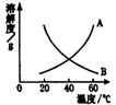 9. A、B两种固体物质的溶解度曲线如图所示。在60℃时烧杯中盛有A、B两种物质的混合溶液,并且杯底尚有少量A、B两种固体,若让其冷却到20℃,则··················· ( )