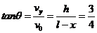 则:h=at2/2 , vy=at , l=v0t (2分)