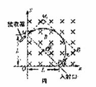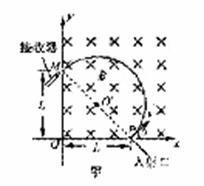 粒子运动轨迹如图所示,圆心C位于与速度v方向垂直的直线上,该直线与x轴和y 轴的夹角均为π/4,有几何关系得C点坐标为: