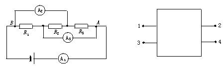 12. 一个盒子装有由导线和几个阻值相同的电阻组成的电路.盒子外面有四个接线柱,如图2-8-12所示,测得1、3间电阻是3、4间电阻的3倍,是1、4间电阻的1.5倍,接线柱2、4间没有明显的电阻,用最少的电阻画出盒内的电路图.