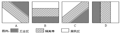A29.从环保角度考虑,我国东部季风区城市布局宜采用下列四图中的哪一布局方式?
