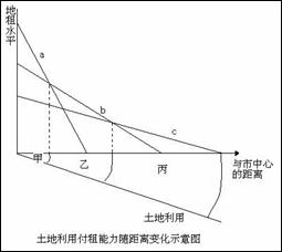 ①距市中心越近,土地租金或价格越高 ②通达度越好,地租就越低