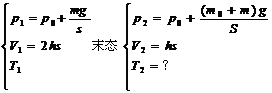 应用理想气体状态方程 = 得T2=(P0++rgL) (4分)