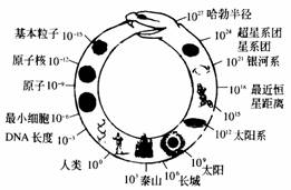 图2.1-1 物质世界的尺度/m
