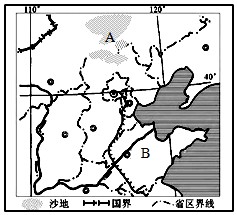 (1)简析图中A区域荒漠化形成的自然和人为原因。(3分)