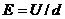 U:电场中两点的电势差 d:两点沿电场线方向的距离 |