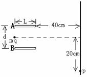 电微粒从偏转极板A、B中间的位置以10米/秒的初速度垂直电场方向进入长为L=20厘米、距离为d=10厘米的偏转电场,出电场后落在距偏转电场40厘米的挡板上,微粒的落点P离开初速度方向延长线的距离为20厘米,不考虑重力的影响。求: