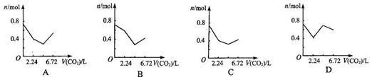 向含有0.2 mol氢氧化钠和0.1 mol氢氧化钙的溶液中,持续稳定地通入二氧化碳气体,通入气体为6.72 L(标准状况)时,立即停止,则这一过程中,溶液中离子数目与通入二氧化碳气体体积的关系正确的是(不考虑气体的溶解)