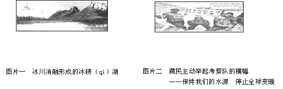 材料一 为见证和记录世界最高峰的冰川消退情况,2007年4月20日,绿色和平珠峰考察队奔赴喜马拉雅。下面是他们带回的两幅图片: