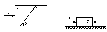 13.(12分)如图2-3-10所示,A、B两个光滑的梯形木块质量均为m,紧挨着并排放在光滑水平面上.倾角θ=60°.欲使A、B在水平推力F作用下,一起加速运动(两者无相对滑动),F不能超过多少?