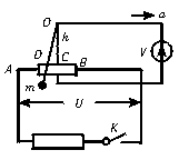 15.(12分)如图2-3-12所示是一种悬球式加速度仪,它可以用来测定沿水平轨道做匀加速直线运动的列车的加速度.m是一个金属球,它系在细金属丝的下端,金属丝的上端悬挂在O点,AB是一根长为l的电阻丝,其阻值为R0.金属丝与电阻丝接触良好,摩擦不计,电阻丝的中点C焊接一根导线.从O点也引出一根导线,两线之间接入一个电压表V(金属丝和导线电阻不计).图中虚线OC与AB相垂直,且OC=h,电阻丝AB接在电压为U的直流稳压电源上.整个装置固定在列车中使AB沿着车前进的方向.列车静止时金属丝呈竖直状态,当列车加速或减速前进时,金属线将偏离竖直方向,从电压表的读数变化可以测出加速度的大小.