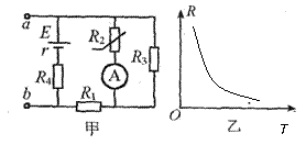 某兴趣小组对一火灾报警装置的部分电路进行探究,其电路如图所示,其中R2是半导体热敏电阻,它的电阻随温度变化关系如图乙所示.当R2所在处出现火情时,通过电流表的电流I和a、b两端电压U与出现火情前相比D