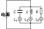 如图所示电路中,L1、L2、L3是三盏相同的电灯,当电源为220V的交流电源时,L1、L2、L3的发光情况相同.如将电源改为220V的直流电源,则稳定后观察到的现象是