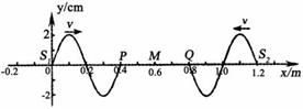 图示为t=0时刻两波源间的波形图像,波源S1和S2分别位于坐标原点和x=1.2m处,质点M位于x=0.6m处,此时图中x=0.4m和x=0.8m处的P、Q两质点刚开始振动。已知两列波的波速均为v=0.4m/s、振幅均为A=2cm,其中S1只振动了一个周期,下列判断正确的是( )