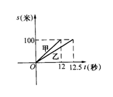 C.乙跑完全程需12.5秒; D.甲的速度是8米/秒