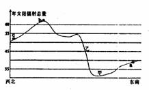 右图为我国鸟鲁木齐至广州一线年太阳辐射总量变化曲线图(单位:亿焦耳/平方米·年),读图回答12~13题。