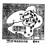 16.拟在该岛平原地区建一个小型农场,其土地利用方式如图所示,则该农场的农业地域类型是 ( )