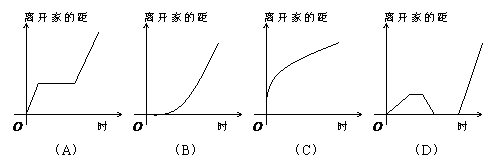 图象(B)对应事件(3),刚刚开始缓缓行进,后来为了赶时间开始加速;