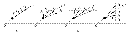 4.如图所示,小车上固定着三角硬杆,杆的端点固定着一个质量为m的小球.当小车有水平向右的加速度且逐渐增大时,杆对小球的作用力的变化(用F1至F4变化表示)可能是下图中的(OO'沿杆方向)( )