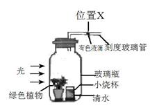 (8分)光是影响植物光合作用的主要因素。但不知光是否影响植物的呼吸作用。甲同学所用的实验装置如右图所示,并设置A、B两组。A组给予植物适宜强度的光照,B组不给光照。实验开始时,刻度玻璃管内的有色液滴在位置X。20min后观察A、B两组有色液滴的移动情况(呼吸作用以葡萄糖为原料,不考虑气体在水中的溶解)。据此回答下列问题: