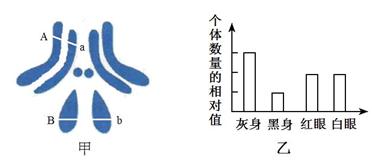 34.(10分)图甲为一只果蝇体细胞中染色体组成及其部分基因,其中灰身(A)对黑身(a)为显性,红眼(B)对白眼(b)为显性。该果蝇与“某个体”杂交,F1代个体数量统计如图乙所示。
