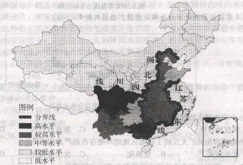 8.下列关于我国农村沼气发展水平空问总体格局的描述,正确的是