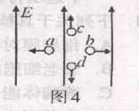 20 、a、b、c、d四个带电液滴在如图4所示的匀强电场中,分别水平向左、水平向右、竖直向上、竖直向下作匀速直线运动,可知 :