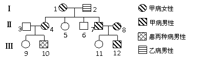 ③若Ⅲ-9与Ⅲ-12近亲结婚(Ⅱ-8家庭无白化病史),生一患甲乙两种病男孩的概率是 。