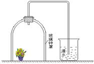 实验材料:带塞的玻璃钟罩,大、小烧杯,10%NaOH溶液, 带刻度的玻璃导管,清水,微型盆栽莱豆幼苗。