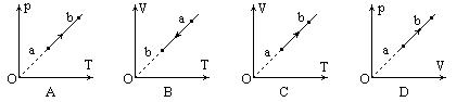 11.如图所示的四个图象中,有一个是表示一定质量的某种理想气体从状态a等压膨胀到状态b的过程.这个图象是          (    )