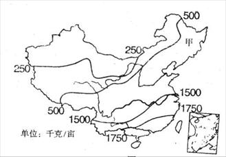 22.与我国南方大多数地区相比,甲地农业生产潜力较小的最主要原因是