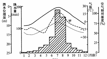 A.降水量 B.空气相对湿度 C.气温曲线 D.潜水位埋深