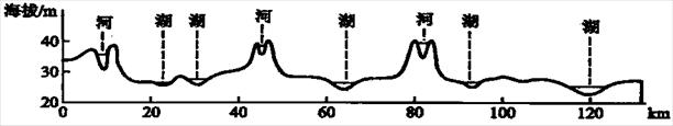 下图示意我国某地形区典型地段的地形剖面,读图完成30-32题。
