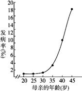 21三体综合征患儿发病率与母亲年龄的关系如右图所示,预防该遗传病的主要措施是