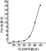 20.21三体综合征患儿发病率与母亲年龄的关系如右图所示,预防该遗传病的主要措施是