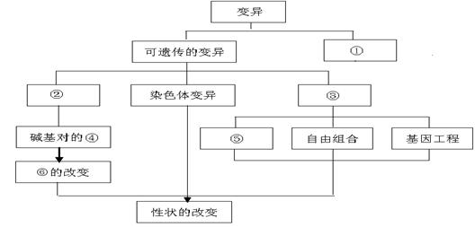 Ⅳ.(3分)下图是有关变异的概念图,请据图填写有关内容:③_______________________,④_______________________,⑤________________________。