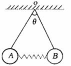 的细线悬挂在O点,两球之间夹着一根劲度系数为月的