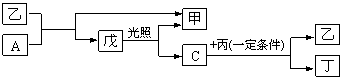乙、丙两个分子中各含有10个电子,并且甲、乙、丙、丁、戊有如下的变化关系: