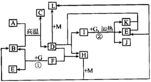 22.(11分)已知物质A-M有下图所示的关系,且常温下,A、M为黄色或浅黄色固体,G为黑色固体,B、K为气体单质,E、F、H为液体;D气体能使澄清的石灰水产生白色沉淀;D、K的水溶液都具有漂白性,但两者混合后不一定具有漂白性;组成F、M的元素共有三种,但F、M都只由两种元素组成,且两元素的原子个数之比均为1:1。