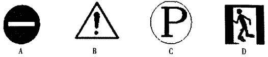 56.(1分)“没有规矩,不成方圆”,我们生活在这个社会上,就要遵守社会规则。下面表示“注意”的标志是 ( )
