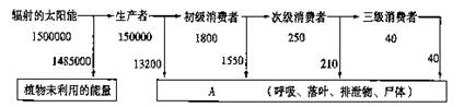 5.下图为生态系统中食物链所反映的能量流动情况,图中箭头表示能量流动的方向,单位为kcal(m2·a)。下列说法错误的是 ( )