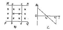 21.水平光滑的平行导轨MN、PQ上放着光滑导体棒ab、cd,两棒用绝缘细线系住,开始时匀强磁场的方向如图甲所示,而磁感应强度B随时间t的变化如图所示,不计ab、cd间电流的相互作用,则细线中的张力 ( )