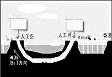 2009年12月15日,港珠澳大桥正式动工,建成后,将成为世界最长的跨海大桥。港珠澳大桥会采用桥隧结合方式,大桥主体工程长29.6公里,桥贯通后,由香港开车到珠海或澳门,只需要15-20分钟,目前行船需1个小时。读大桥设计图,回答12-13题。