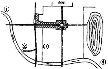 图中①、②、③、④四地中,合理建厂选址是:水厂在 ,污水处理厂在 ,
