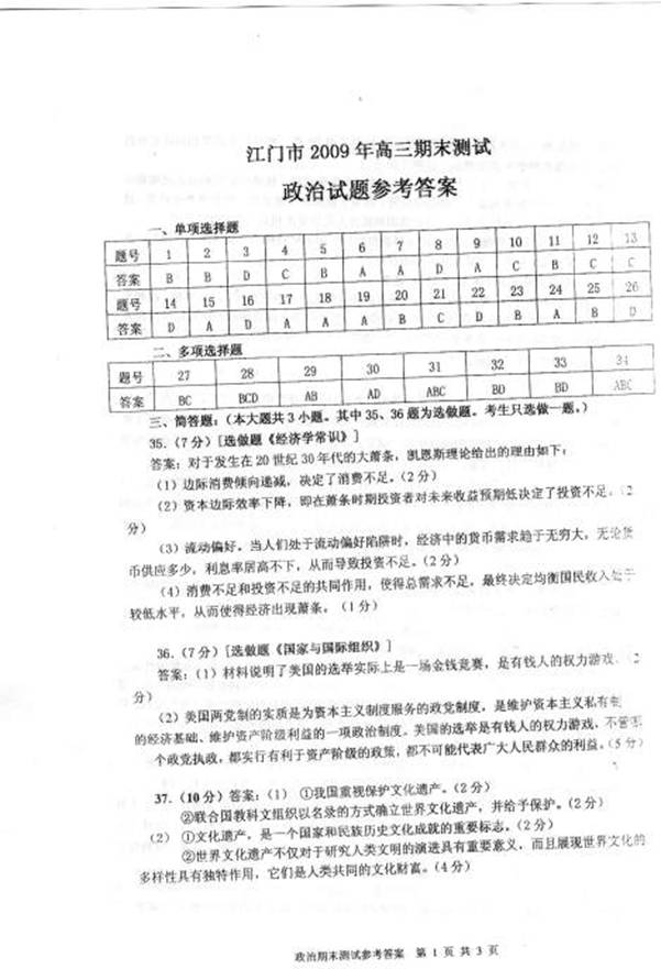评分建议:言之有理,可酬情给分,但第三问总分不超过4分。