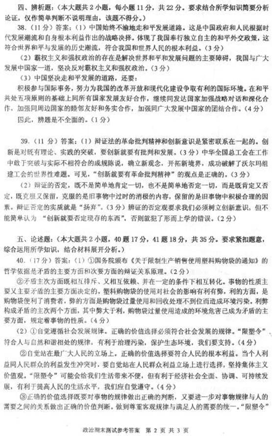 38.(11分)辨析:中国始终不渝地走和平发展道路就是坚决反对霸权主义和强权政治。