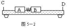 (6分)气垫导轨是常用的一种实验仪器。它是利用气泵使带孔的导轨与滑块之间形成气垫,使滑块悬浮在导轨上,滑块在导轨上的运动可视为没有摩擦。我们可以用带竖直挡板C和D的气垫导轨以及滑块A和B来验证动量守恒定律,实验装置如图5-2所示(弹簧的长度忽略不计),采用的实验步骤如下: